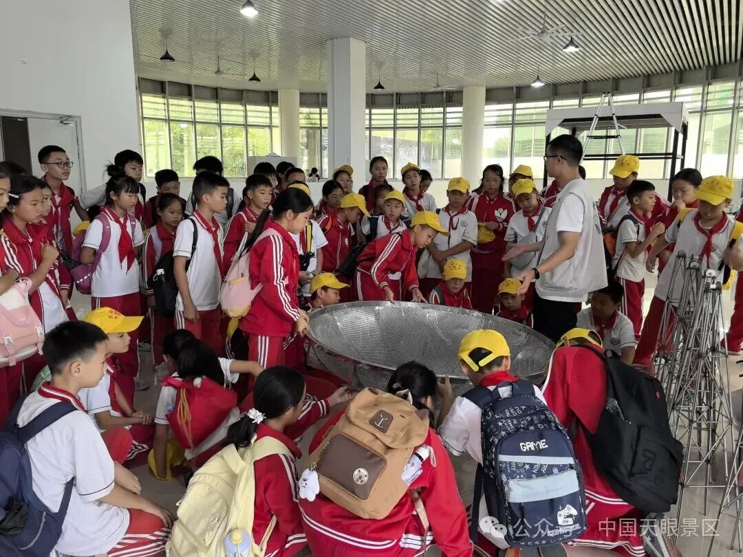 天眼有“你”:让每颗好奇的心都被珍视。“小朋友们知道‘天眼’能看到多远的星星吗?”在景区研学基地,讲解员正通过互动游戏为孩子们科普。景区特别设计了“分级探秘”路线:针对亲子家庭的“星空启蒙线”侧重趣味体验,设置模拟“天眼”观测的互动装置;面向天文爱好者的“深度探索线”则由讲解员讲解观测解读,甚至能参与简易的脉冲星信号分析。从停车场保安主动指引“无障碍通道”,到观景台工作人员蹲身给孩子讲解“天眼”原理,景区用细节传递“有你”的温度。景区运营部主任说,这份“欢迎”不仅是邀请,更是对游客参与科学守护的真诚致谢。