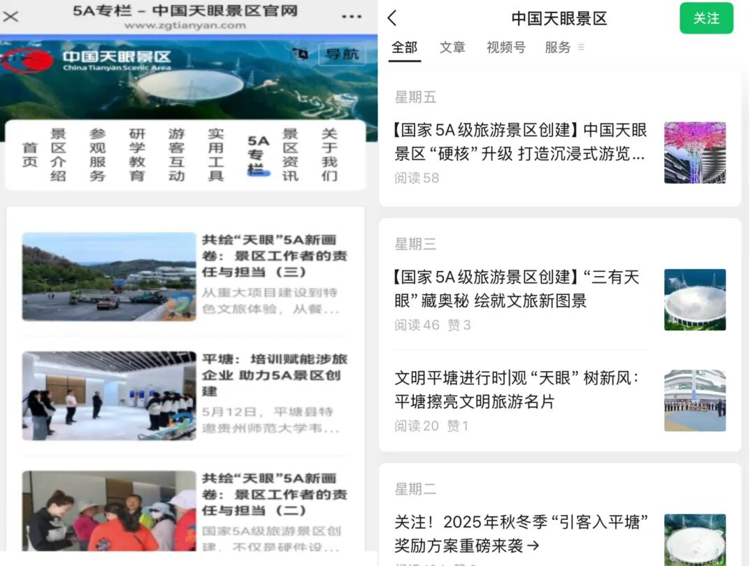 仰望星空,需要一片宁静的净土;落地游览,更需要一份智慧的从容。当前,中国天眼景区正以全方位的智慧化建设,积极争创国家5A级旅游景区,让游客在探寻宇宙奥秘的同时,尽享科技带来的便捷畅游。