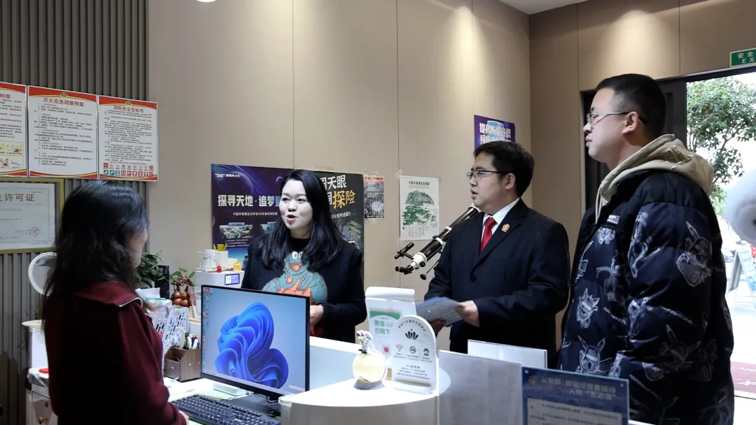 “中国天眼”落成以来,便以其无与伦比的科学价值与探索精神吸引着全球的目光,众多游客慕名而来。而其所在地平塘县,通过实施最严格的科学保护措施,筑牢国之重器的观测环境基石,为国家5A级旅游景区创建注入核心动力。“来这边研学的学生比较多,为了保障‘中国天眼’安全稳定运行,不能带电子产品进入景区,跟他们做好协调工作……”在中国天眼景区一酒店,“天眼”宁静区环境保护法庭工作人员与航龙村干部正在对酒店工作人员