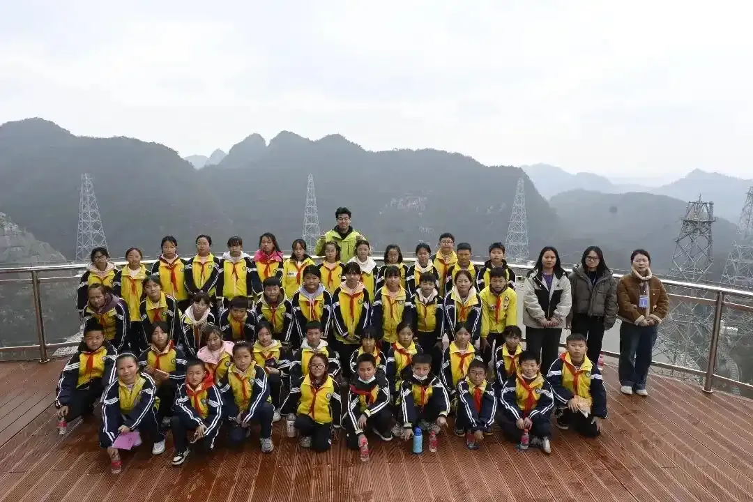 时值初冬,位于平塘天文小镇的中国天眼景区却格外“热”。一批批身着统一服装、充满好奇心的中小学生研学团队,让这座世界最大的单口径球面射电望远镜所在地的小镇,成为了冬日里最火热的知识殿堂。清晨,在冬日暖阳的照耀下,来自毕节市大方金塔英才学校的近千名学子已经抵达景区,在科普讲解员的带领下沉浸式探索宇宙深处的无穷奥秘,感受“大国重器”的科技魅力。中国天眼景区研学热“我们八年级语文课本当中有篇文章叫做《天上
