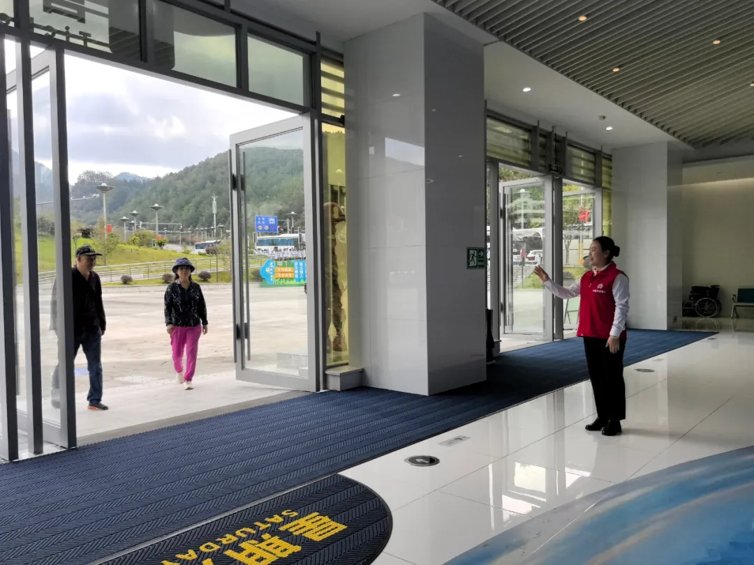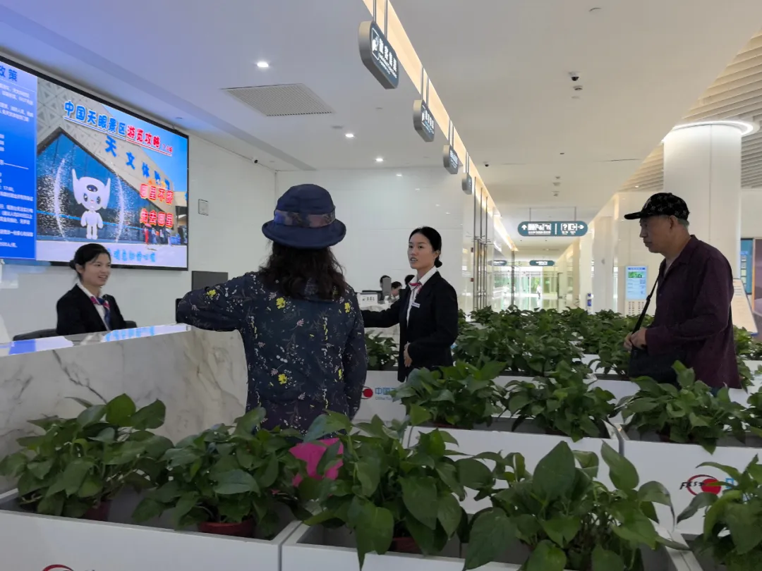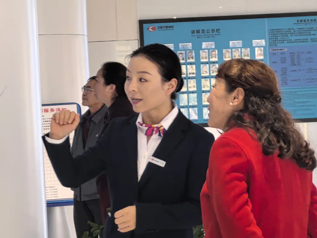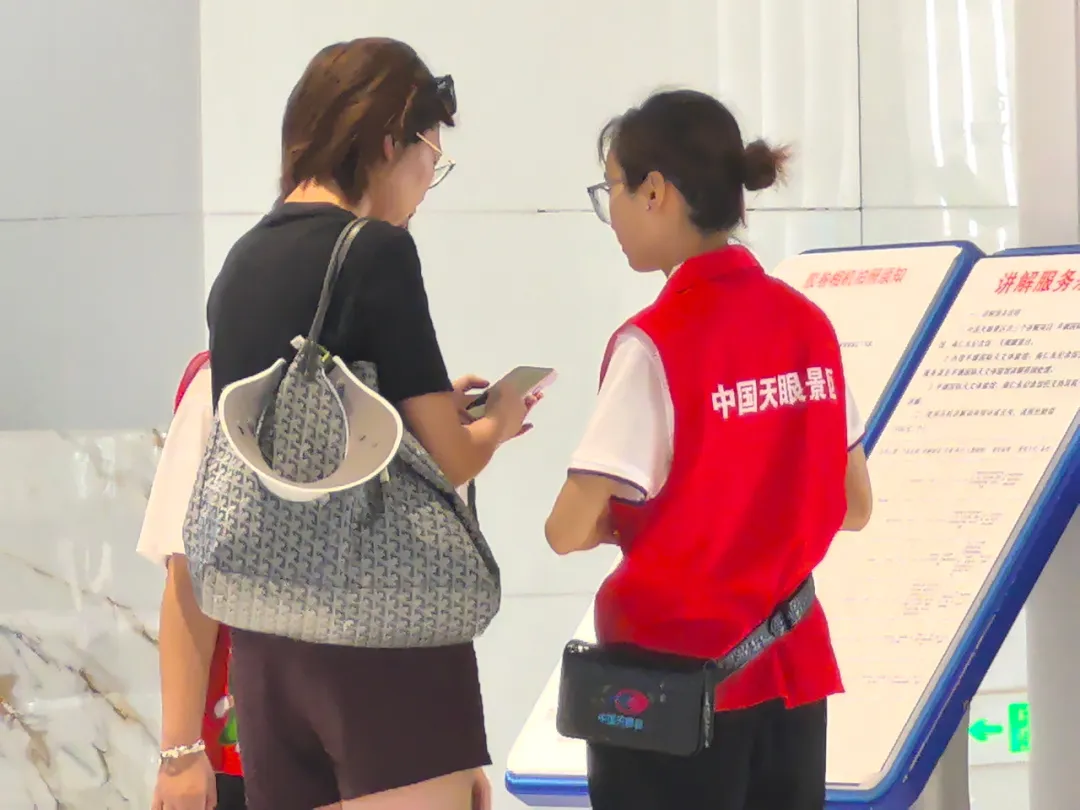 “3米问候”传递的是“亲切感”。在观景台,客服员看到一对年轻情侣在寻找最佳拍摄角度,犹豫着不知如何站位时,她主动走上前:“您好,要拍天眼全景的话,这边的位置视野最好,还能避开人群。”周大姐的热情问候让小情侣十分惊喜,按照她的指引,顺利拍到满意的照片。