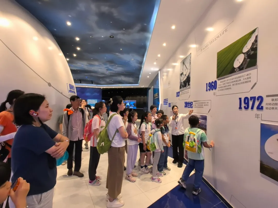 “10米留意”考验的是“观察力”。在天文体验馆的展厅内,讲解员小陈正专注地巡视着参观人群。当她看到一位老年游客在展柜前驻足良久,时不时揉着眼睛,便默默记下这位游客的位置。“游客在10米外的细微动作,可能都在传递需求信号。”小陈解释道,她观察到老人可能是看不清展柜内的文字说明,便走上前去向老人讲解。“太贴心了,我正发愁看不清呢!”老人连连道谢。