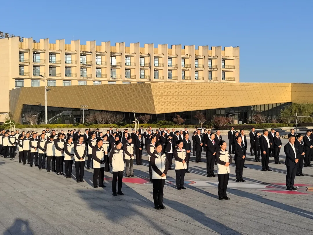 “各位同事,晨操开始!先调整站姿,挺胸收腹,保持微笑!”随着景区客服部负责人的指令,150余名来自不同岗位的员工迅速列队。他们中既有访客中心的客服人员、天文体验馆的讲解员,还有摆渡车司机,年龄跨度从20出头的青年到50多岁的老员工,却都以同样饱满的热情投入到晨操中。