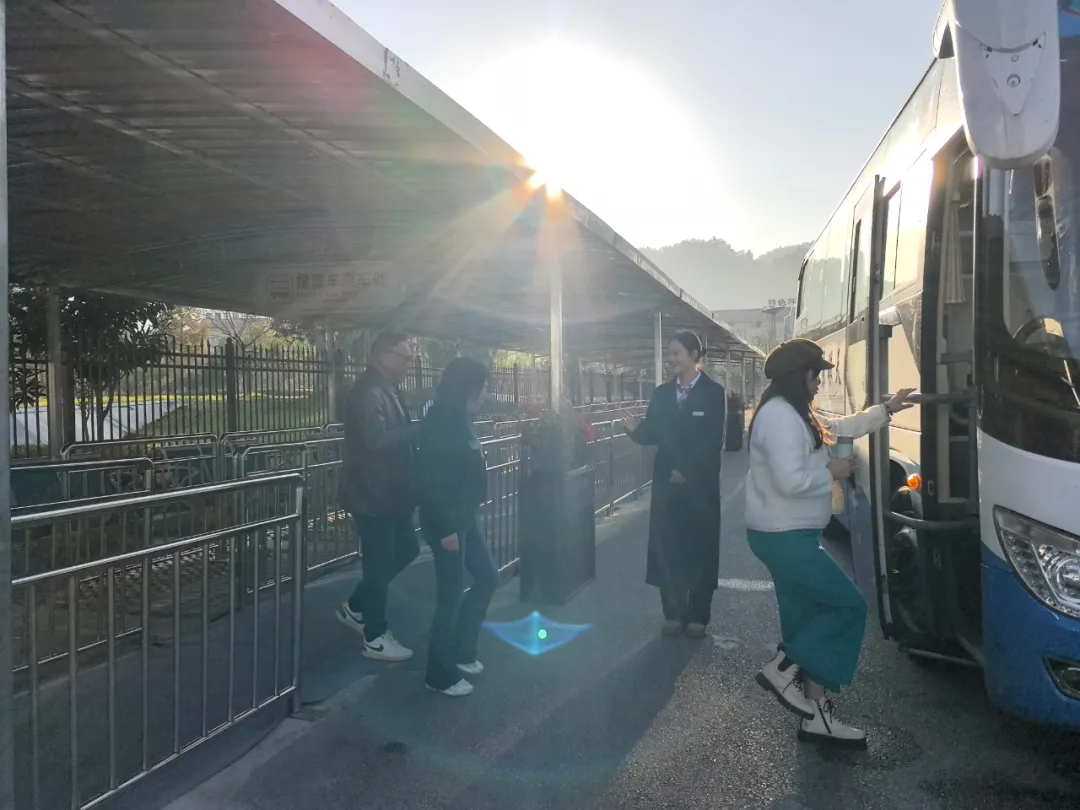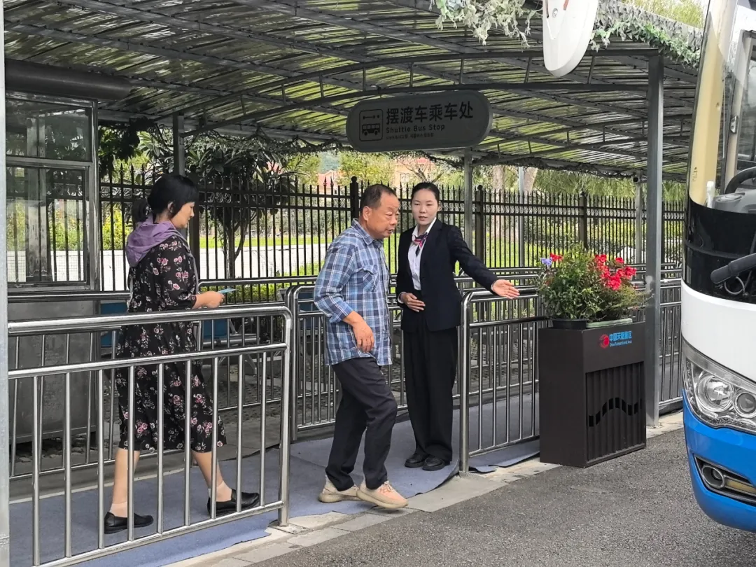 “5米起身”彰显的是“仪式感”。摆渡车候车区,司机老王正站在车旁待命,当看到远处有几位游客朝着候车区走来,距离还有5米时,他立刻起身说“您好”,便做出“请上车”的手势。“起身迎接不是形式,而是让游客感受到被重视。”老王说,以前他习惯等游客走上车,推行“5米起身”后,不少游客反馈“感觉受到尊重,旅途更舒心”。