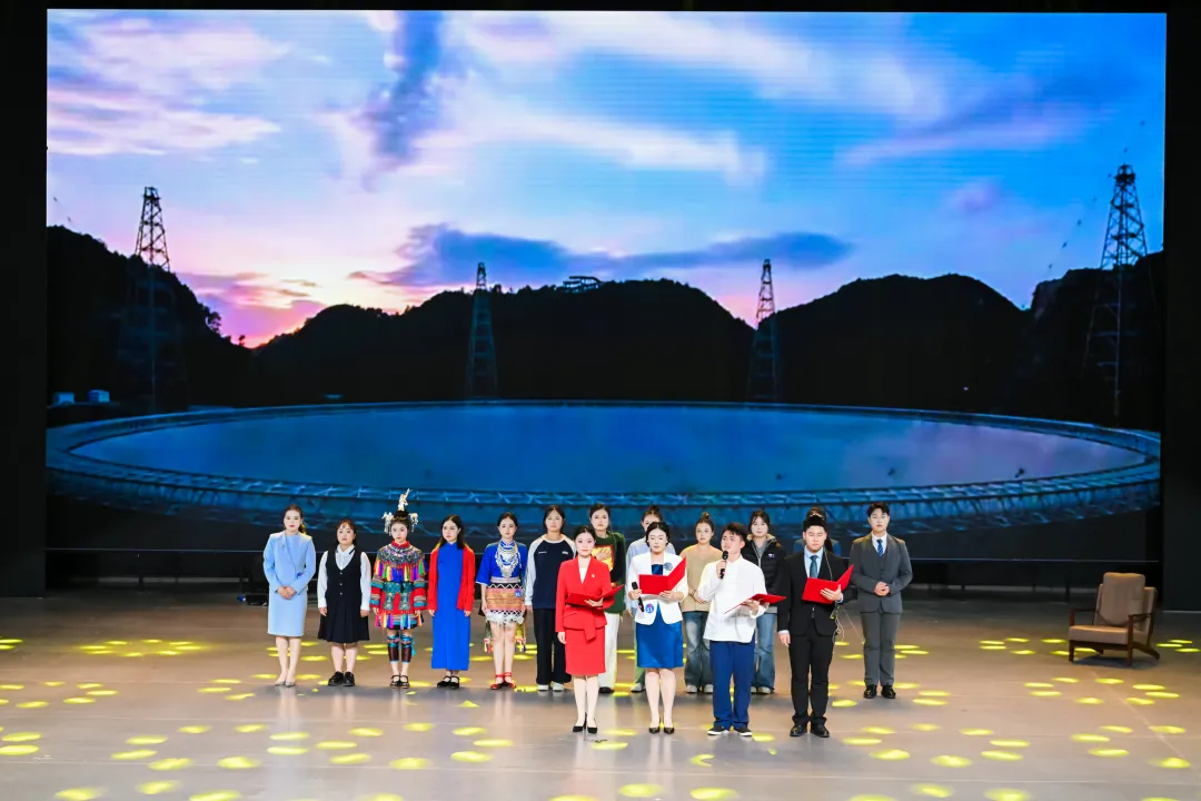 总决赛现场,气氛紧张而热烈,比赛环节精彩纷呈。大赛设置了导游讲解、才艺展示、情景剧《怀念永远的南仁东》演出及评委点评等多个环节,全面考验选手的专业素养与综合能力。