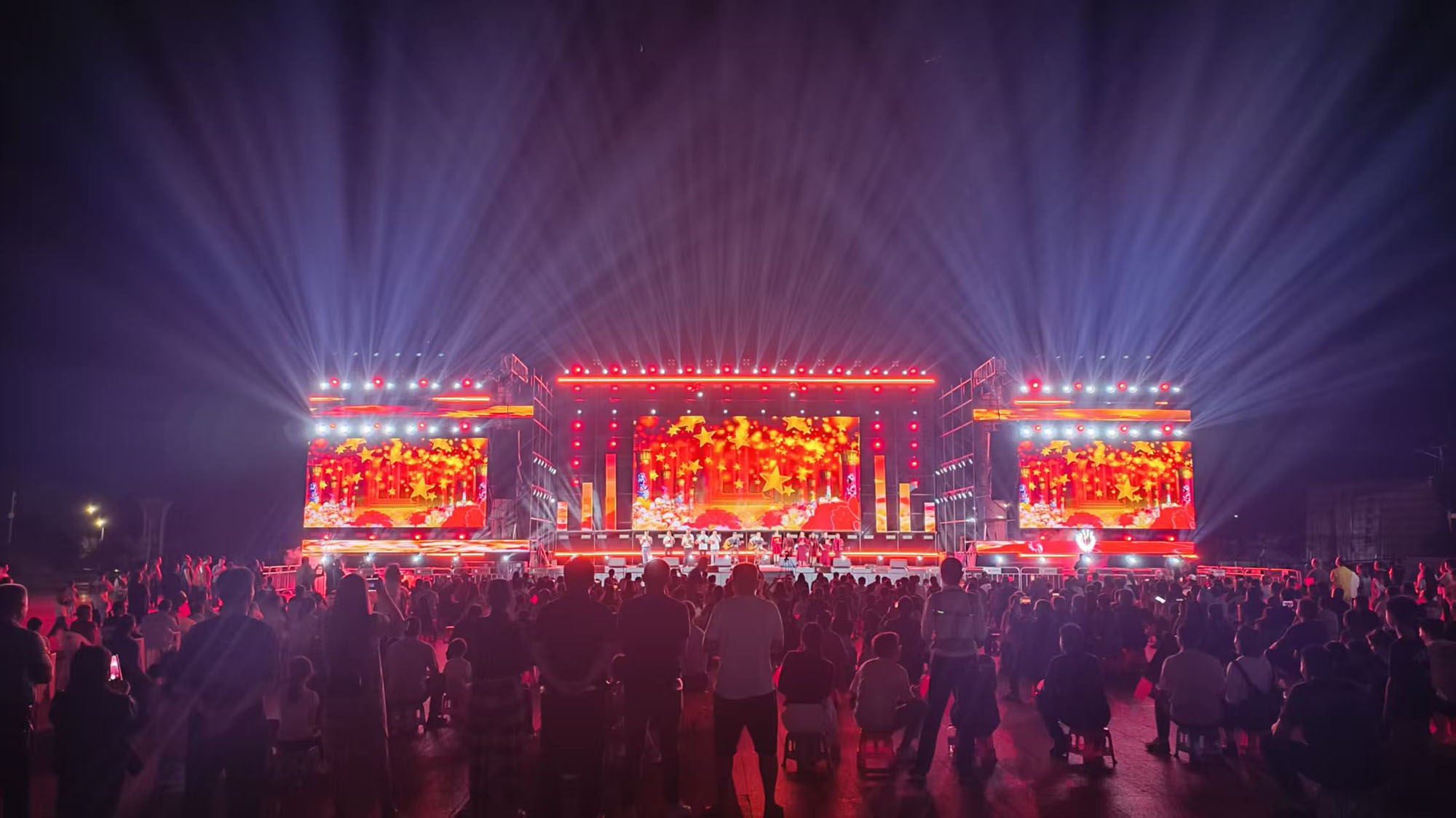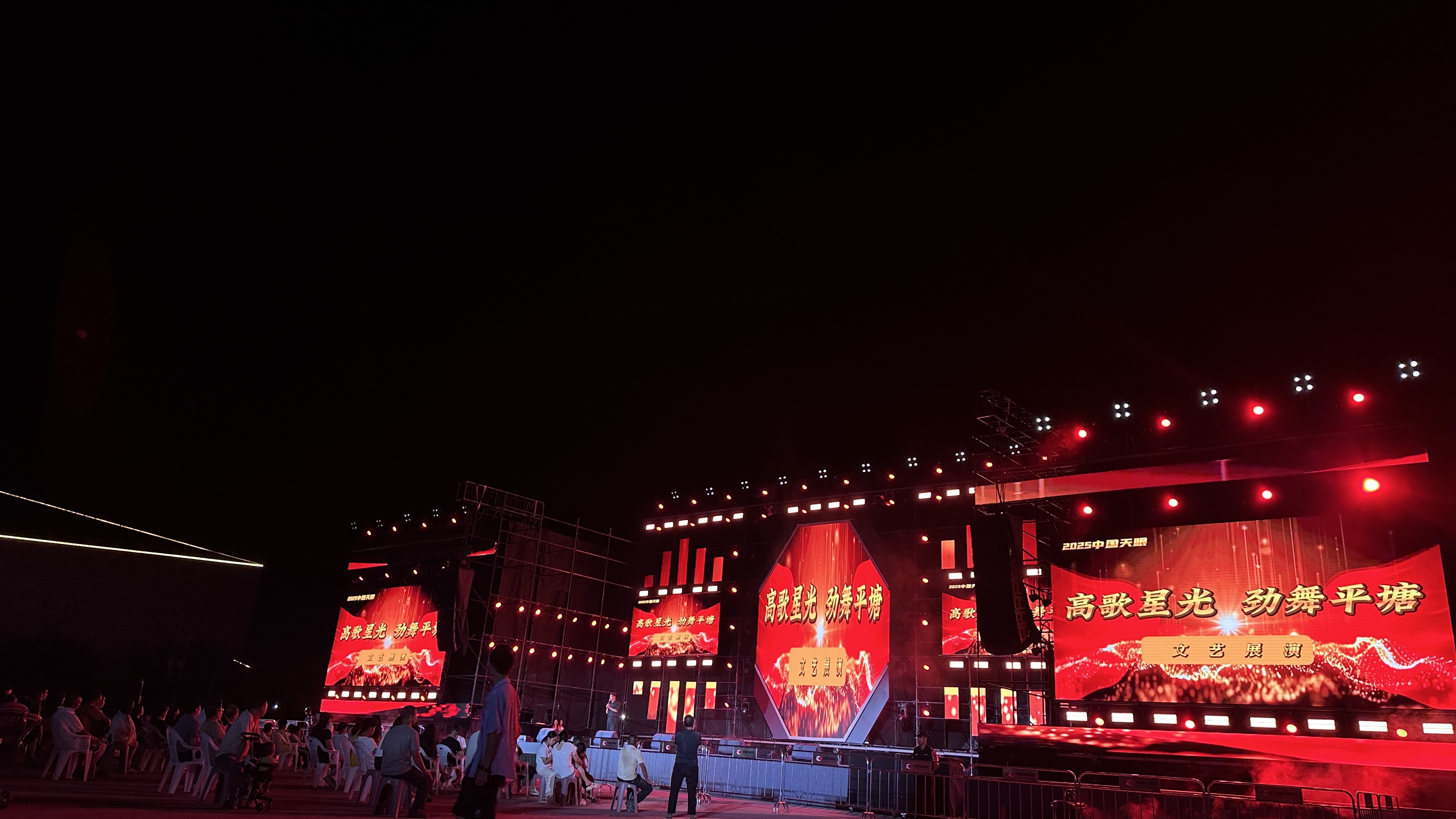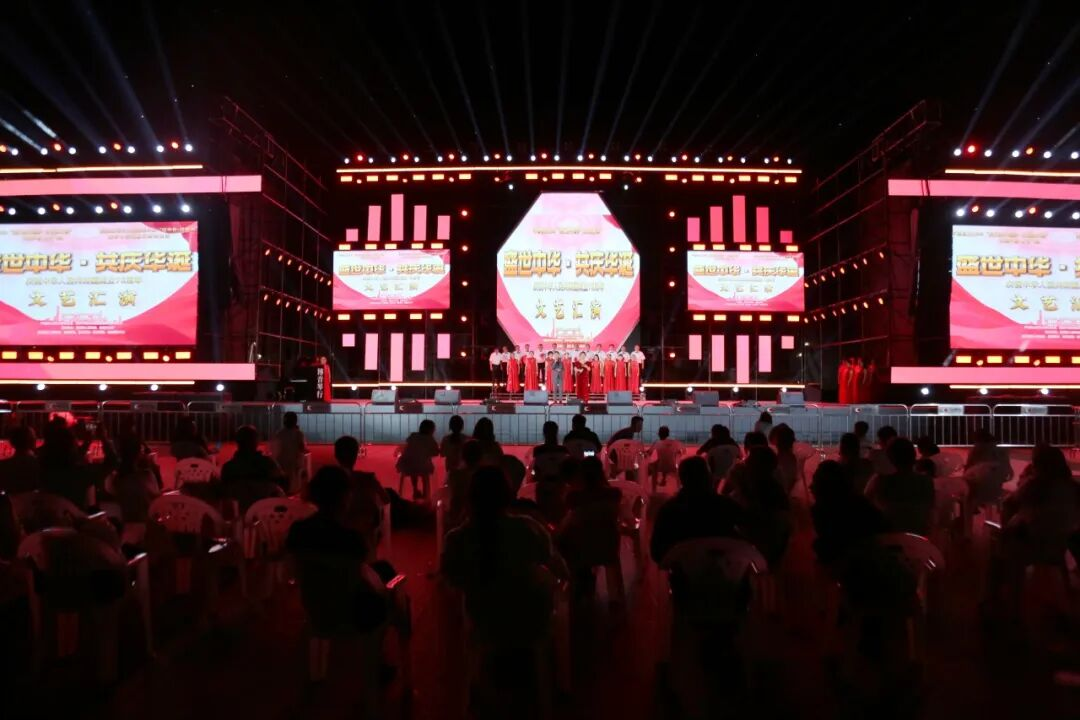 金秋送爽,丹桂飘香。9月27日晚,一场以“盛世中华·共庆华诞”为主题的精彩文艺汇演在平塘天文小镇隆重上演,热烈庆祝中华人民共和国成立76周年。晚上7点30分,演出在女生合唱《洪湖水浪打浪》中启幕。绚丽的灯光照亮舞台,演员们用嘹亮的歌声,瞬间点燃了全场观众的爱国热情。演出现场整场晚会分为《红的记忆》《时空回响》《时代新貌》三个篇章,节目丰富多彩,演出高潮迭起,既有红歌大合唱《没有共产党就没有新中国》